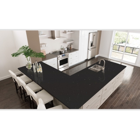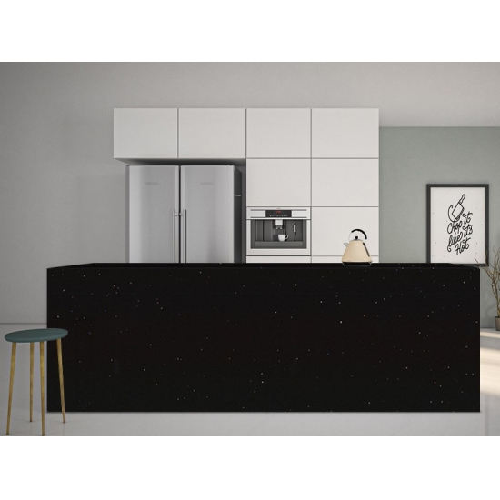 Sparkle Quartz INK PLANT — это специально обработанный искусственный кварцевый камень, который отличается от других серий более блестящим внешним видом. Этот кварц придает ощущение глубины и текстуры при укладке на стены, полы, столешницы и т. д. Его можно использовать для создания потрясающих настенных панно и фартуков для раковин в ванных комнатах и на кухне. Благодаря своим антибактериальным и влагостойким свойствам, этот кварц отлично подходит для помещений, контактирующих с влагой.