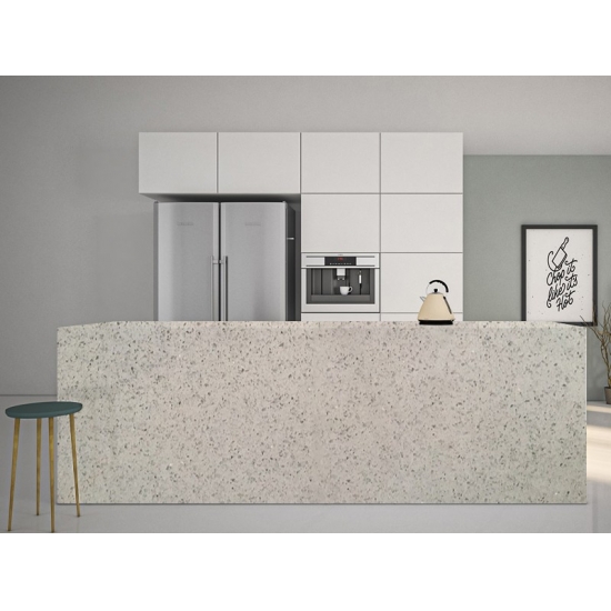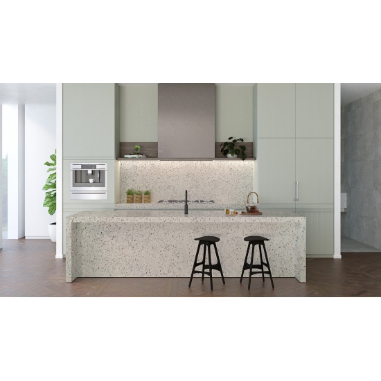 Sparkle Quartz Grey Galaxy Light — это специально обработанный искусственный кварцевый камень, который отличается от других серий более блестящим внешним видом. Этот кварц придает ощущение глубины и текстуры при укладке на стены, полы, столешницы и т. д. Его можно использовать для создания потрясающих настенных панно и фартуков для раковин в ванных комнатах и на кухне. Благодаря своим антибактериальным и влагостойким свойствам, этот кварц отлично подходит для помещений, подверженных воздействию влаги.