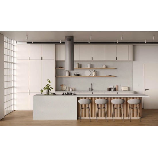Sparkle Quartz — это специально обработанный искусственный кварцевый камень, который отличается от других серий более блестящим внешним видом. Этот кварц придает ощущение глубины и текстуры при укладке на стены, полы, столешницы и т. д. Его можно использовать для создания потрясающих настенных панно и фартуков для раковин в ванных комнатах и на кухне. Благодаря своим антибактериальным и влагостойким свойствам, этот кварц отлично подходит для помещений, контактирующих с влагой.