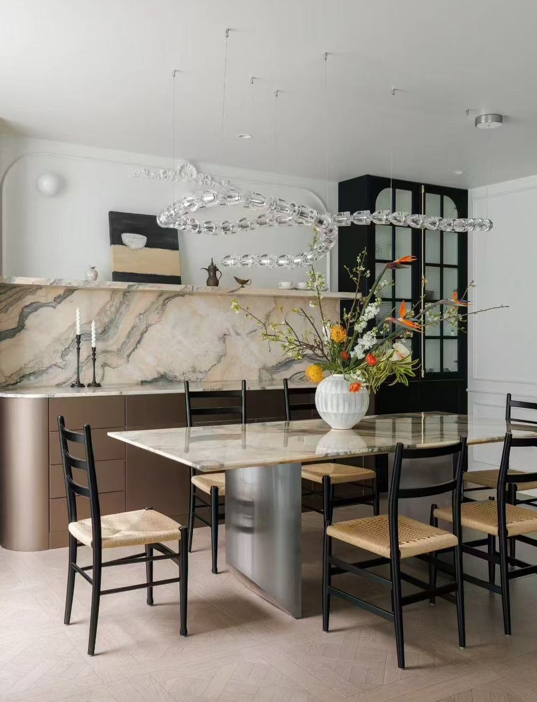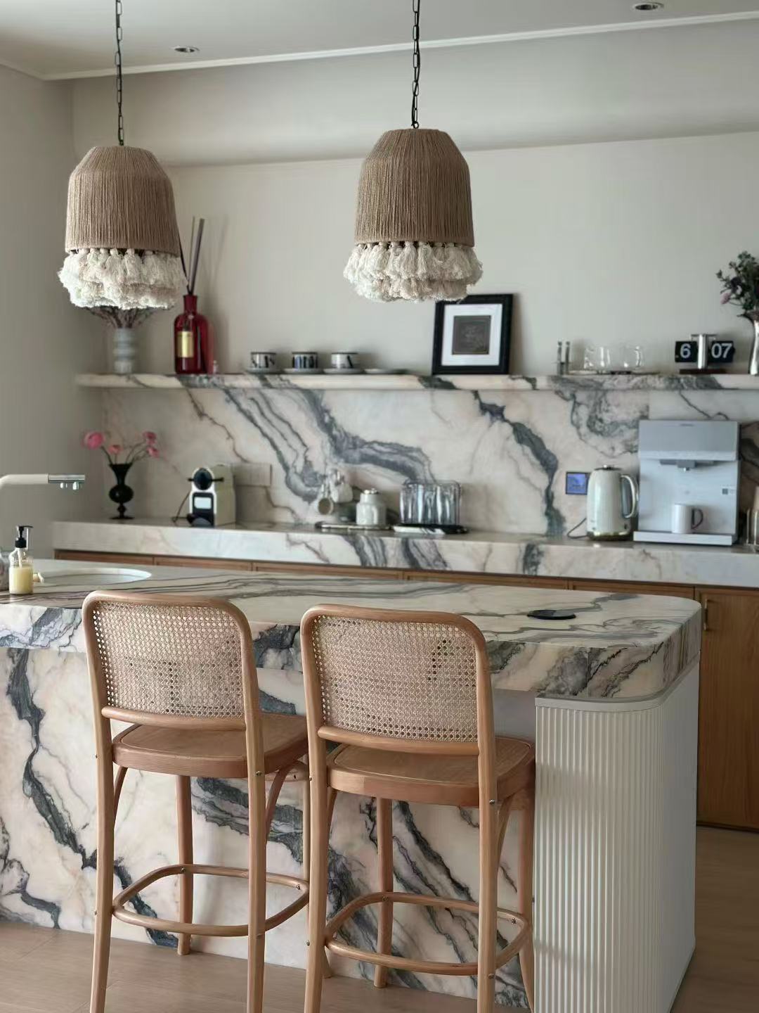 Комплексный портфель: От классического мрамора и гранита до уникальных кварцита и травертина — наша обширная библиотека материалов рассчитана на самые разные стили.
