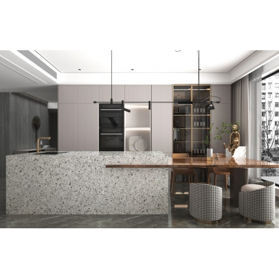 Кварц Wing Soar Dark Sparkle — это специально обработанный искусственный кварцевый камень, отличающийся от других серий более блестящим внешним видом. Этот кварц придает ощущение глубины и текстуры при укладке на стены, полы, столешницы и т. д. Его можно использовать для создания потрясающих настенных панно и фартуков для раковин в ванных комнатах и на кухне. Благодаря своим антибактериальным и влагостойким свойствам, этот кварц отлично подходит для помещений, контактирующих с влагой.