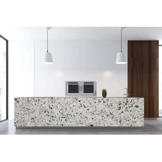 Ink Plant Sparkle Quartz — это специально обработанный искусственный кварцевый камень, который отличается от других серий более блестящим внешним видом. Этот кварц придает ощущение глубины и текстуры при укладке на стены, полы, столешницы и т. д. Его можно использовать для создания потрясающих настенных панно и фартуков для раковин в ванных комнатах и на кухне. Благодаря своим антибактериальным и влагостойким свойствам, этот кварц отлично подходит для помещений, контактирующих с влагой.