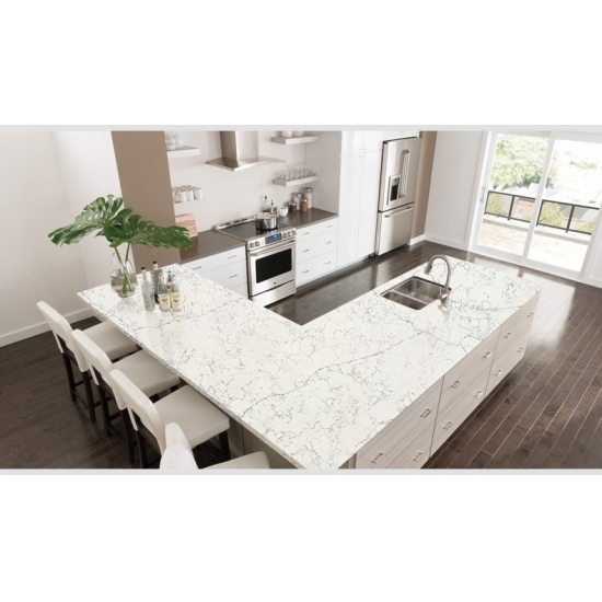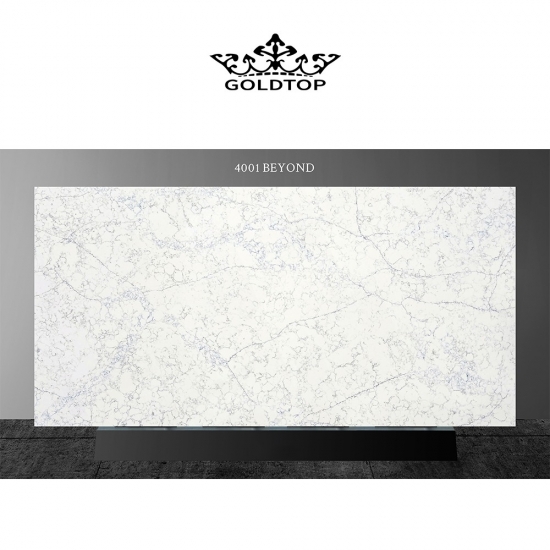 4001 Beyond Marble Quartz Slab Этот кварц отличается изысканным и элегантным внешним видом, вдохновленным эстетикой натурального мрамора. Его мягкий, светлый фон подчеркнут тонкими, плавными прожилками, создающими сбалансированное ощущение движения и гармонии. Поверхность кажется чистой, но в то же время выразительной, обеспечивая визуальную глубину, не будучи при этом чрезмерной. Этот кварц воплощает вневременную изысканность, что делает его идеальным выбором как для современных, так и для классических интерьеров, привнося ощущение сдержанной роскоши в кухни, ванные комнаты и элитные коммерческие помещения.