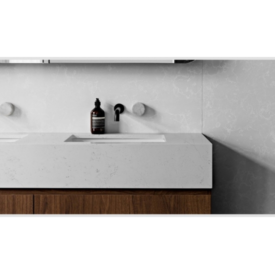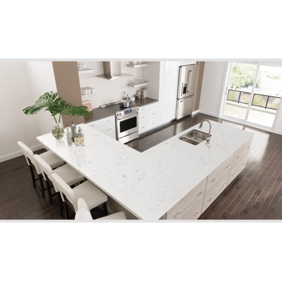 4002 Кварцевая плита из каррарского мрамора Ocean Эта кварцевая плита отличается изысканным и элегантным внешним видом с мягким белым фоном, подчеркнутым тонкими серыми прожилками, вдохновленными натуральным каррарским мрамором. Плавные прожилки создают спокойное, похожее на океан движение по поверхности, добавляя глубину, но при этом сохраняя чистую и вневременную эстетику. Эта кварцевая плита излучает сдержанную роскошь, сочетая классическую красоту с современной прочностью, что делает ее идеальным выбором для кухонь, ванных комнат и изысканных интерьеров, стремящихся к яркому и элегантному виду.
