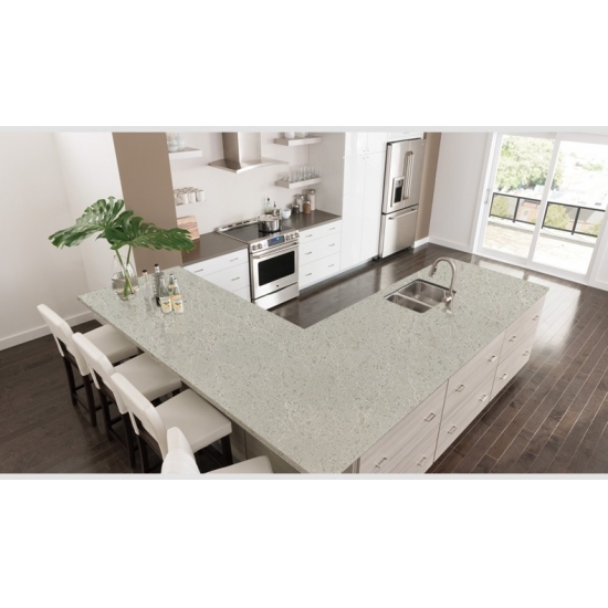 4010 Кварцевая плита с эффектом капельного мрамора Этот кварц отличается изысканным и элегантным внешним видом: мягкий белый фон подчеркнут тонкими серыми прожилками, плавно перетекающими по поверхности. Тонкие, напоминающие мрамор узоры, создают спокойную и воздушную эстетику, привнося ощущение баланса и естественного движения. Этот кварц излучает сдержанную роскошь, что делает его идеальным выбором для помещений, стремящихся к чистому, вневременному и утонченному виду.