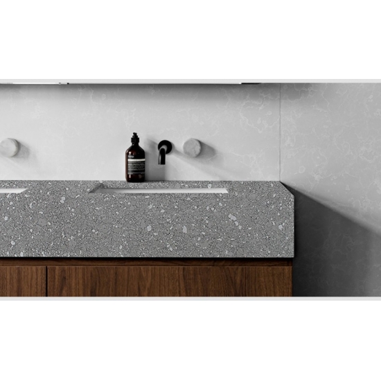 4019 Французский мрамор Vagli Кварц Этот кварц отличается элегантным и изысканным внешним видом, мягким кремовым фоном с нежными серыми и едва заметными бежевыми прожилками. Поверхность излучает утонченность, а тонкие прожилки плавно извиваются по плите, создавая ощущение естественного движения и глубины. Этот кварц призван привнести сдержанную роскошь в любой интерьер, что делает его идеальным выбором для тех, кто ищет вневременной и классический акцент.