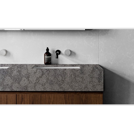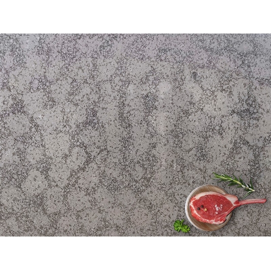 4023 Серый мраморный кварц Эта кварцевая плита отличается изысканным и элегантным внешним видом благодаря мягкой серой основе, подчеркнутой едва заметными белыми и бежевыми прожилками. Поверхность излучает спокойствие и утонченность, а мягкие тона и плавные узоры создают ощущение глубины и естественного движения. Эта кварцевая плита призвана украсить любое пространство сдержанной роскошью, привнося безмятежный, но стильный штрих в отделку столешниц, стен или других внутренних поверхностей.