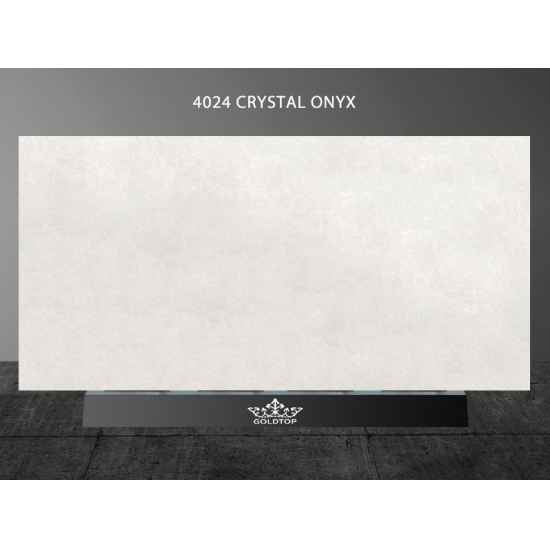 4024 Кристаллический оникс, мраморный кварц Этот кварц отличается эффектным, элегантным внешним видом с мягкой бело-кремовой основой, изящно испещренной золотистыми и светло-коричневыми прожилками. Поверхность излучает изысканность, а тонкие прожилки мягко мерцают на свету, создавая ощущение глубины и естественной красоты. Этот кварц призван привнести роскошь и утонченность, повышая эстетическую привлекательность любого помещения, которое он украшает.