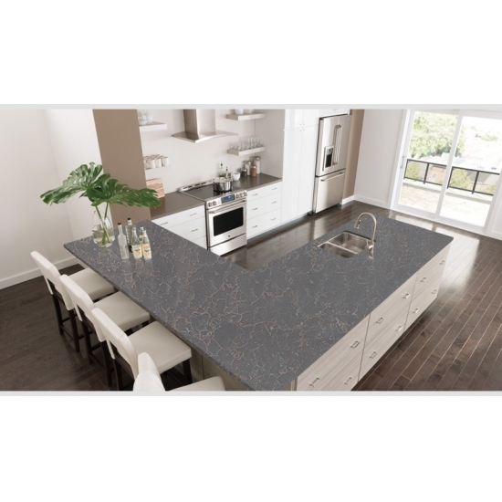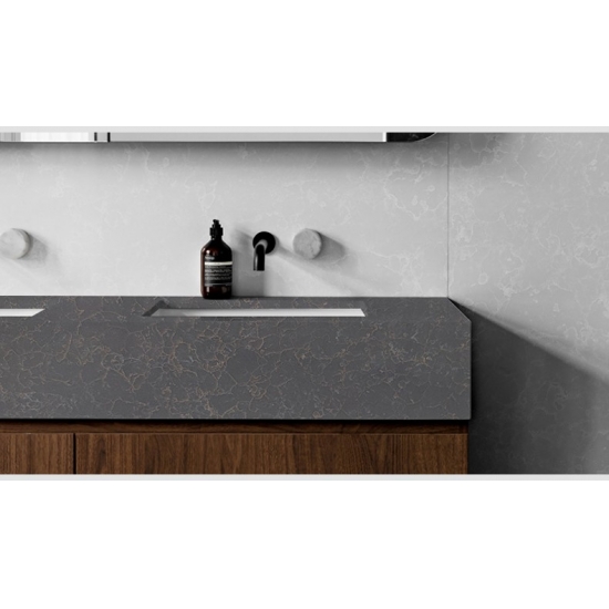4041 Кварцевая мраморная плита Haldi Этот кварц отличается теплым и элегантным внешним видом, мягким кремовым фоном, подчеркнутым нежными золотисто-бежевыми прожилками, вдохновленными натуральным мрамором. Поверхность выглядит изысканной и сбалансированной, поскольку тонкие прожилки естественно перетекают по плите, создавая ощущение гармонии и сдержанной роскоши. Этот кварц призван привнести тепло и утонченность в пространство, что делает его идеальным выбором для столешниц, кухонных островов и изысканных интерьерных решений.