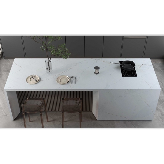 Кварц Калакатта состоит из натуральных компонентов, но при этом прочный, долговечный и обладает низкой пористостью, что делает изделия из кварцевого камня практически износостойкими. Долговечность, комфорт и однородная текстура — главные причины растущей популярности кварцевого камня. Кварцевый камень на 90% состоит из натурального камня, остальное — клей, красители и добавки, улучшающие технические свойства камня. Водопроницаемость и устойчивость к пятнам дополняют красоту кварцевого камня.