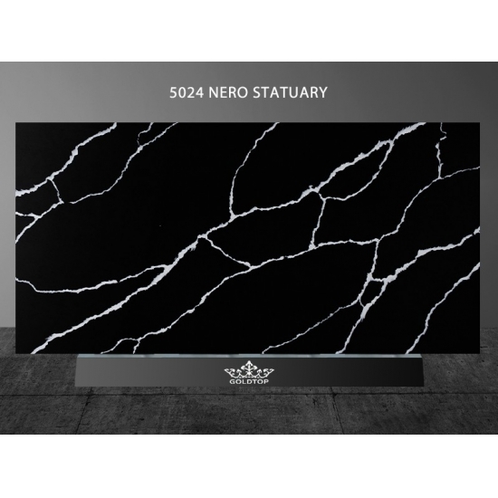 ГОЛДТОП 5024 Nero Statuary Black Calacatta Quartz Countertops