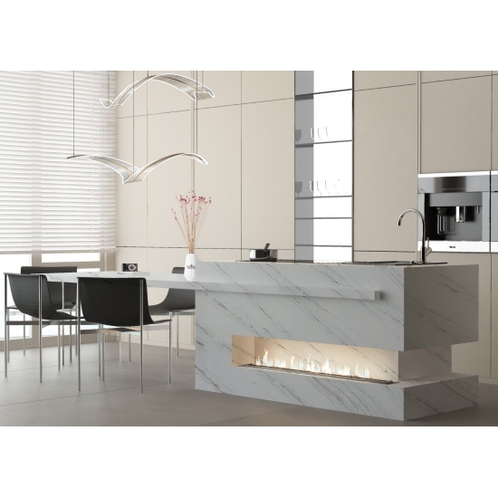 Этот кварц идеально подходит для самых разных применений: от столешниц и кухонных островов до акцентных стен и туалетных столиков. Его выразительные прожилки придают ему характер и изысканность, делая его центральным элементом любого дизайна. В сочетании с элегантными металлическими или теплыми древесными тонами кварц 5125 Calacatta Fiorina подчеркнет элегантность любого пространства.