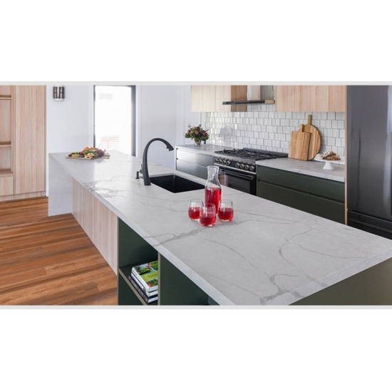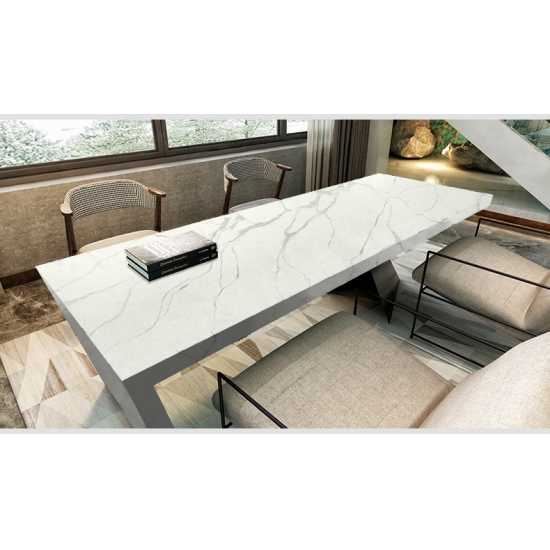 Кварцевая плита 5034 Starry Quartz Slab отличается пленительным темным основанием, красиво усеянным светящимися кристаллическими вкраплениями, напоминающими звезды. Этот эффектный контраст создает ощущение глубины и небесного великолепия. Плита отличается смелой, современной элегантностью, идеально подходящей для создания яркого акцента в современных интерьерах благодаря своему завораживающему, роскошному очарованию.