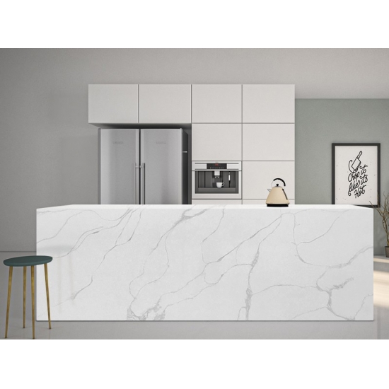 Кварц Калакатта состоит из натуральных компонентов, но при этом прочный, долговечный и обладает низкой пористостью, что делает изделия из кварцевого камня практически износостойкими. Долговечность, комфорт и однородная текстура — главные причины растущей популярности кварцевого камня. Кварцевый камень на 90% состоит из натурального камня, остальное — клей, красители и добавки, улучшающие технические свойства камня. Водопроницаемость и устойчивость к пятнам дополняют красоту кварцевого камня.