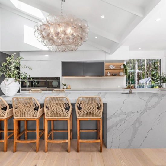Этот кварц идеально подходит для самых разных применений: от столешниц и кухонных островов до акцентных стен и туалетных столиков. Его выразительные прожилки придают ему характер и изысканность, делая его центральным элементом любого дизайна. В сочетании с элегантными металлическими или теплыми древесными тонами кварц 5125 Calacatta Fiorina подчеркнет элегантность любого пространства.