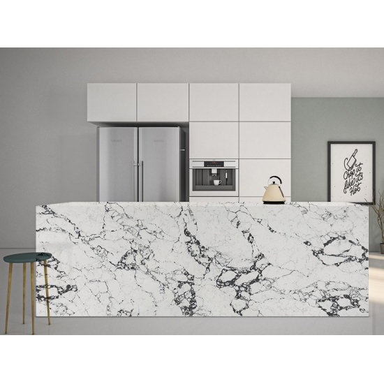 Кварц Калакатта состоит из натуральных компонентов, но при этом прочный, долговечный и обладает низкой пористостью, что делает изделия из кварцевого камня практически износостойкими. Долговечность, комфорт и однородная текстура — главные причины растущей популярности кварцевого камня. Кварцевый камень на 90% состоит из натурального камня, остальное — клей, красители и добавки, улучшающие технические свойства камня. Водопроницаемость и устойчивость к пятнам дополняют красоту кварцевого камня.