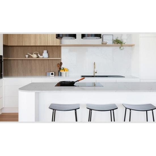 Этот кварц идеально подходит для самых разных применений: от столешниц и кухонных островов до акцентных стен и туалетных столиков. Его выразительные прожилки придают ему характер и изысканность, делая его центральным элементом любого дизайна. В сочетании с элегантными металлическими или теплыми древесными тонами кварц 5125 Calacatta Fiorina подчеркнет элегантность любого пространства.