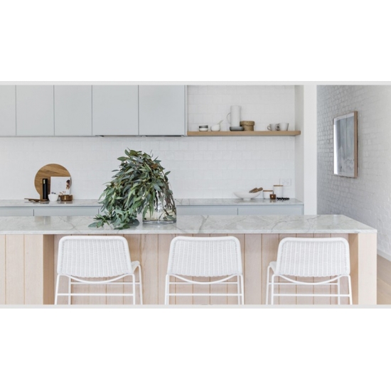 Кварц Volakas White Calacatta 5044 идеально подходит для самых разных применений благодаря своей вневременной элегантности и универсальному дизайну. Этот полированный кварц обычно используется для кухонных столешниц, туалетных столиков в ванных комнатах и фартуков, где его чистая белая поверхность с мягкими серыми прожилками добавляет изысканности. Он также идеально подходит для облицовки стен и полов как в жилых, так и в коммерческих помещениях.