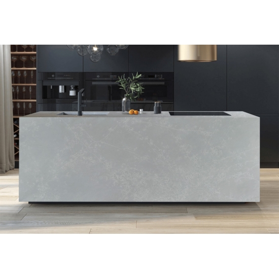 Кварцевая плита 5128 Fior Bosco представляет собой изысканное серое полотно, элегантно очерченное тонкими органическими прожилками, которые вызывают в памяти безмятежную красоту лесного пейзажа. Каждая плита демонстрирует уникальную композицию тональной глубины и плавных переходов, привнося современную и атмосферную безмятежность в любой интерьер. Ее сияющая поверхность усиливает отражение света, создавая динамичный визуальный поток, идеально подходящий для кухонных столешниц, туалетных столиков в ванных комнатах и акцентных стен.