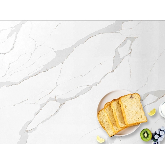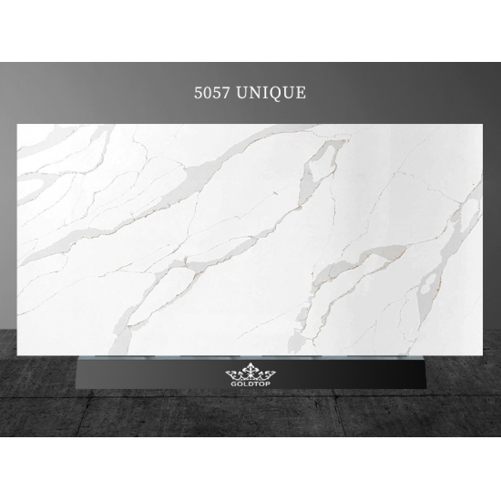 Кварцевая плита 5057 Unique Marble Quartz отличается смелым и художественным характером, с эффектной темной основой, драматически переплетающейся с яркими белыми и золотыми прожилками. Интенсивный контраст создает динамичный, неповторимый визуальный эффект. Эта плита станет ярким акцентом в современных и роскошных интерьерах.