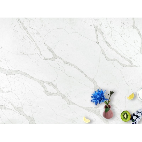 Кварц 5063 Verona Calacatta, не содержащий кремнезема, предлагает более здоровый и экологичный вариант для поверхностей, особенно на кухнях и в ванных комнатах. Его бескремниевый состав делает его более безопасным при укладке и снижает риски для здоровья, связанные с воздействием кремнеземной пыли. Элегантные прожилки Calacatta придают поверхности роскошный вид, напоминающий мрамор, а прочная, непористая поверхность обеспечивает устойчивость к пятнам, царапинам и высоким температурам.