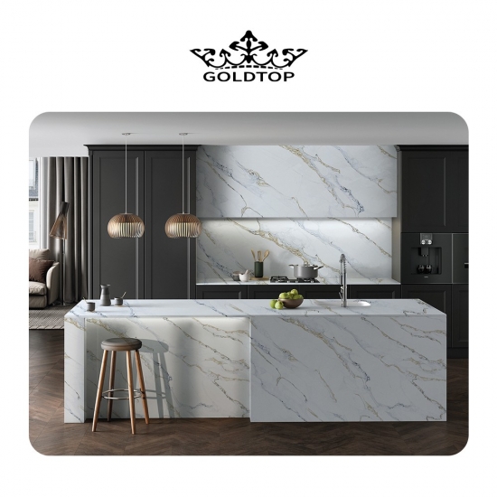 Кварцевые плиты 5066 Calacatta Fendy — это элегантный и изысканный вариант для различных поверхностей. Эти плиты отличаются потрясающим белым фоном с эффектными, выразительными прожилками серых и золотых оттенков. Рисунок прожилок имитирует классический вид натурального мрамора Calacatta, но при этом обладает прочностью и неприхотливостью в уходе, характерными для кварца.