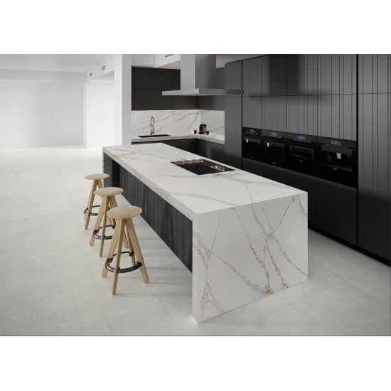 Этот кварц идеально подходит для самых разных применений: от столешниц и кухонных островов до акцентных стен и туалетных столиков. Его выразительные прожилки придают ему характер и изысканность, делая его центральным элементом любого дизайна. В сочетании с элегантными металлическими или теплыми древесными тонами кварц 5125 Calacatta Fiorina подчеркнет элегантность любого пространства.