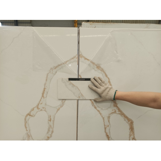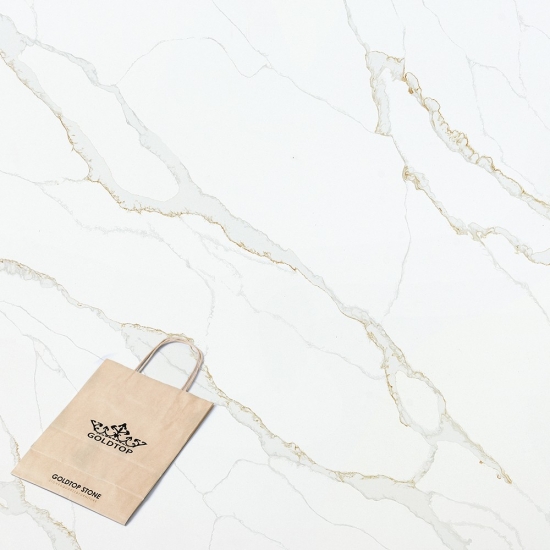 50 Square MetersИзысканный и уникальный кварц Calacatta поражает воображение своей чистой белизной и эффектной текстурой, имитирующей мрамор. Благодаря красивому, яркому рисунку широких прожилок и роскошной текстуре, этот кварц предлагает естественный вид мрамора Calacatta, но без недостатков, присущих мраморным столешницам. Кварц Calacatta — очень прочный материал для столешниц, устойчивый к пятнам и царапинам, что делает его очень практичным выбором для кухонных и ванных столешниц, лестниц, подоконников, мебели на заказ, внутренней и внешней отделки стен и полов, гидроабразивной резки и других дизайнерских проектов.