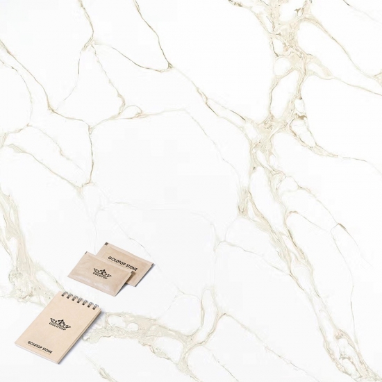Кварц серии Calacatta в настоящее время является самым популярным кварцевым камнем. Изысканный и уникальный, кварц Calacatta поражает воображение своими чистыми белыми оттенками и эффектными прожилками, имитирующими мрамор. Благодаря красивому, яркому рисунку широких прожилок и роскошной текстуре, этот кварц предлагает естественный вид мрамора Calacatta, но без недостатков, присущих мраморным столешницам. Кварц Calacatta — очень прочный материал для столешниц, устойчивый к пятнам и царапинам, что делает его очень практичным выбором для кухонных и ванных столешниц, лестниц, подоконников, мебели на заказ, внутренней и внешней отделки стен и полов, гидроабразивной резки и других дизайнерских проектов.