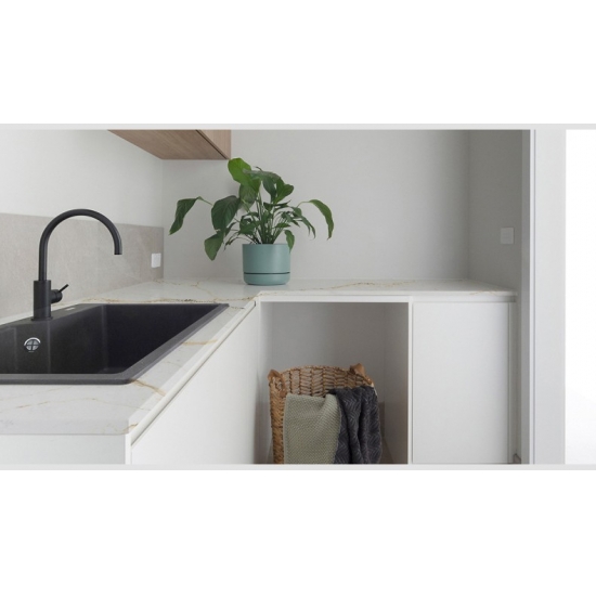 Кварцевая плита 5098 Majestic отличается смелым и эффектным характером, определяемым глубоким угольно-черным основанием, мощно переплетающимся с поразительными белыми прожилками. Высококонтрастное движение создает ощущение динамичной энергии и величия. Эта плита станет незабываемым акцентом, идеально подходящим для создания центральных элементов в современных роскошных проектах, и наполнит любое пространство уверенной, современной роскошью.