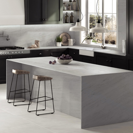 Изысканный и уникальный кварц Calacatta поражает воображение своей чистой белизной и эффектной текстурой, имитирующей мрамор. Благодаря красивому, яркому рисунку широких прожилок и роскошной текстуре, этот кварц предлагает естественный вид мрамора Calacatta, но без недостатков, присущих мраморным столешницам. Кварц Calacatta — очень прочный материал для столешниц, устойчивый к пятнам и царапинам, что делает его очень практичным выбором для кухонных и ванных столешниц, лестниц, подоконников, мебели на заказ, внутренней и внешней отделки стен и полов, гидроабразивной резки и других дизайнерских проектов.