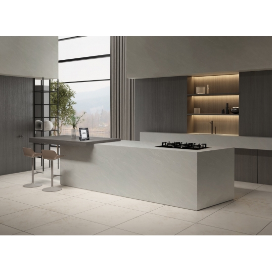 Кварцевая столешница 4051 Organic White Caesar Quartz Zero Silicon имеет чисто белую поверхность и экологически чистый состав без содержания силикона, что гарантирует ее нетоксичность и безопасность использования. К ее преимуществам относятся высокая прочность, простота в уходе и современный минималистичный дизайн, что делает ее идеальной для кухонных и ванных столешниц в домах, где соблюдаются принципы здорового образа жизни.