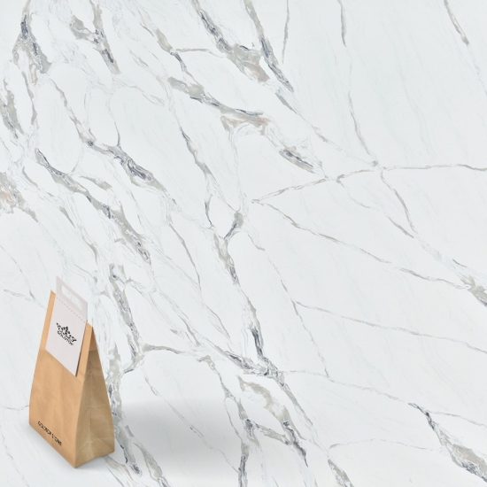 Кварц серии Calacatta в настоящее время является самым популярным кварцевым камнем. Изысканный и уникальный, кварц Calacatta поражает воображение своими чистыми белыми оттенками и эффектными прожилками, имитирующими мрамор. Благодаря красивому, яркому рисунку широких прожилок и роскошной текстуре, этот кварц предлагает естественный вид мрамора Calacatta, но без недостатков, присущих мраморным столешницам. Кварц Calacatta — очень прочный материал для столешниц, устойчивый к пятнам и царапинам, что делает его очень практичным выбором для кухонных и ванных столешниц, лестниц, подоконников, мебели на заказ, внутренней и внешней отделки стен и полов, гидроабразивной резки и других дизайнерских проектов.
