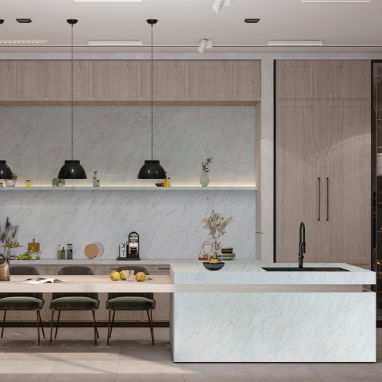 Отель и Квартира Проекты, демонстрирующие интегрированные решения для столешниц и кухонной мебели, разработанные с учетом долговечности, эстетики и реализации масштабных проектов.