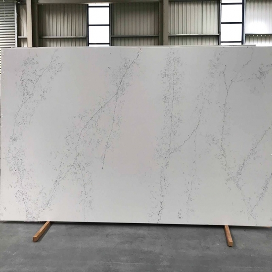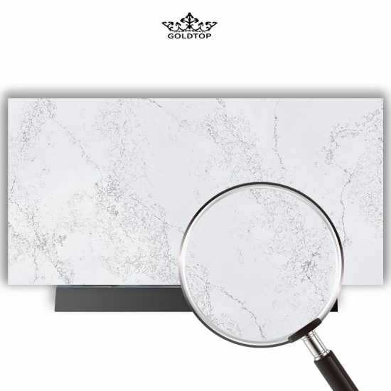 Кварц «Белый цемент» с текстурой «снежинка» — это специально обработанный искусственный кварцевый материал. Подобно матовой поверхности, бетонная отделка немного изменяет цвет кварца по сравнению с классической полированной поверхностью. Такая отделка также называется «шлифованной» применительно к граниту.