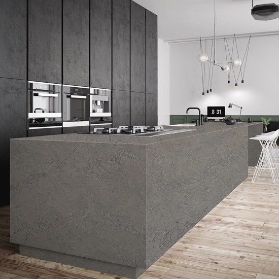 Бетонный кварц — это специально обработанный искусственный кварцевый материал. Подобно матовой поверхности, бетонная отделка немного изменяет цвет кварца по сравнению с классической полированной поверхностью. Применительно к граниту такую отделку также называют «шлифованной».