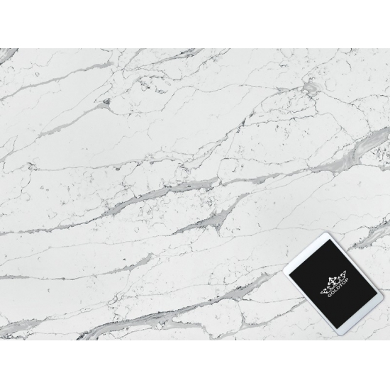 Кварц «Белый цемент» с текстурой «снежинка» — это специально обработанный искусственный кварцевый материал. Подобно матовой поверхности, бетонная отделка немного изменяет цвет кварца по сравнению с классической полированной поверхностью. Такая отделка также называется «шлифованной» применительно к граниту.