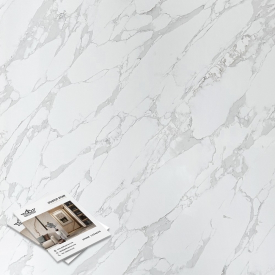 Кварц серии Calacatta в настоящее время является самым популярным кварцевым камнем. Изысканный и уникальный, кварц Calacatta поражает воображение своими чистыми белыми оттенками и эффектными прожилками, имитирующими мрамор. Благодаря красивому, яркому рисунку широких прожилок и роскошной текстуре, этот кварц предлагает естественный вид мрамора Calacatta, но без недостатков, присущих мраморным столешницам. Кварц Calacatta — очень прочный материал для столешниц, устойчивый к пятнам и царапинам, что делает его очень практичным выбором для кухонных и ванных столешниц, лестниц, подоконников, мебели на заказ, внутренней и внешней отделки стен и полов, гидроабразивной резки и других дизайнерских проектов.
