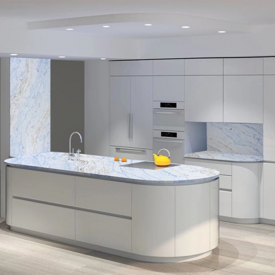 Поднимите эстетическую привлекательность вашей кухни на новый уровень с помощью потрясающих столешниц из белого кварца Lazada с синими и золотыми прожилками. Изготовленные с точностью и тщательностью, эти столешницы отличаются уникальным сочетанием синих и золотых прожилок. Это великолепные плиты из синего кварца, придающие роскошный и современный вид. Идеально подходящие для кухонь и ванных комнат, эти столешницы созданы для того, чтобы выдерживать ежедневный износ, сохраняя при этом красоту и долговечность. Обновите свое пространство с помощью столешниц из белого кварца Lazada с синими и золотыми прожилками и откройте для себя новый уровень элегантности и изысканности.