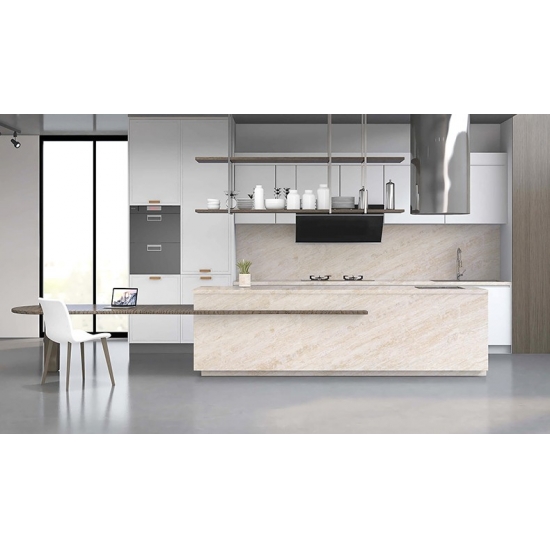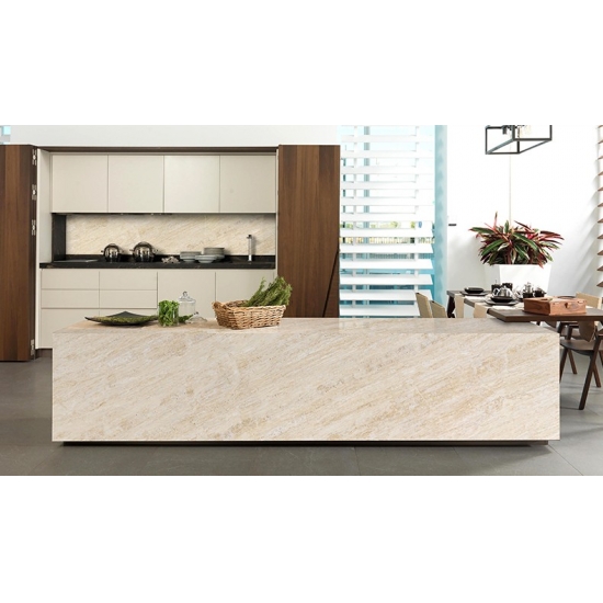 Daino Reale Beige Quartz — это искусственный кварц, отдающий дань уважения легендарному итальянскому камню. Он мастерски воссоздает культовую красоту натурального мрамора Daino Reale, отличаясь теплым бежевым фоном, украшенным элегантными полосатыми узорами, в которых переплетаются оттенки кофе, карамели и слоновой кости. Уникальное включение окаменелых деталей и минеральных слоев добавляет визуальной насыщенности и неповторимого характера каждой плите, органично сочетая многовековую сардинскую элегантность с современным дизайном, наполняя любое пространство сбалансированным теплом и художественной привлекательностью.