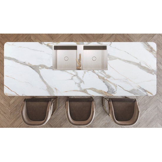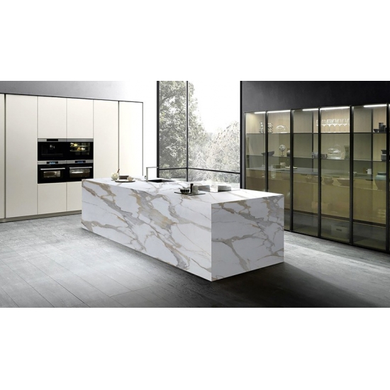 Кварцевая плита 7005 Calacatta Macchia Vecchia PD демонстрирует эффектный белый фон, дополненный выразительными угольно-серыми прожилками, создающими яркий контраст. Динамичные, замысловатые узоры создают мощный и художественный визуальный эффект. Эта плита воплощает в себе роскошь и современное великолепие, идеально подходящая для создания центрального элемента в изысканных интерьерах.