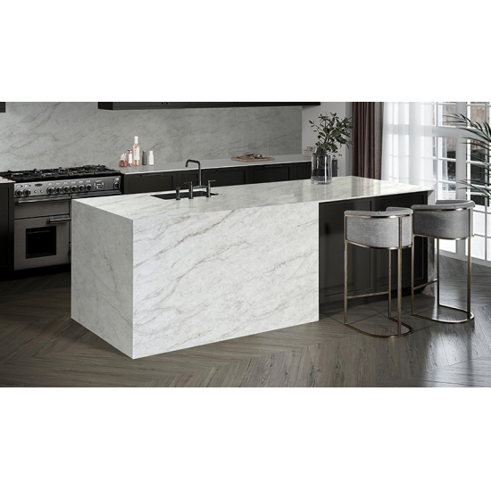 Этот кварц отличается изысканным и элегантным внешним видом с мягким теплым бежевым фоном, подчеркнутым плавными, изящными прожилками. Поверхность излучает ощущение естественной роскоши, поскольку тонкие прожилки добавляют глубины и движения, сохраняя при этом спокойный и сбалансированный вид. Этот кварц призван привнести вневременную изысканность в любое пространство, что делает его идеальным выбором для кухонь, ванных комнат и элитных жилых или коммерческих интерьеров.