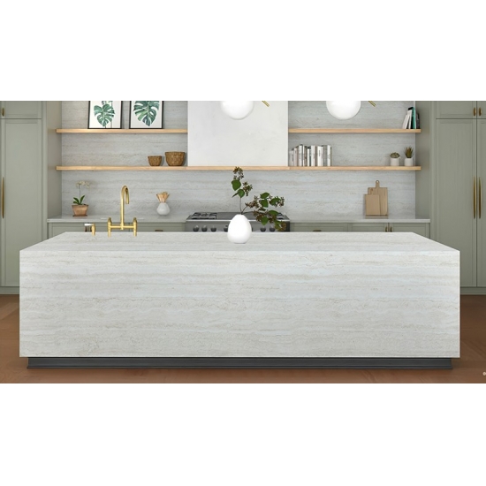Травертин Roman Travertine PD Printed Quartz открывает безмятежный мир вневременной элегантности. Окутанный мягким, теплым бежевым оттенком, напоминающим выгоревший на солнце шелк, его поверхность излучает чистоту и спокойствие, создавая визуально успокаивающую и восстанавливающую основу. Тонкие прожилки переплетаются, словно естественные отпечатки времени, добавляя художественный штрих к его сдержанной роскоши. Каждый сантиметр наполнен тихой роскошью, наполняя любое пространство безмятежной тишиной исторической глубины.
