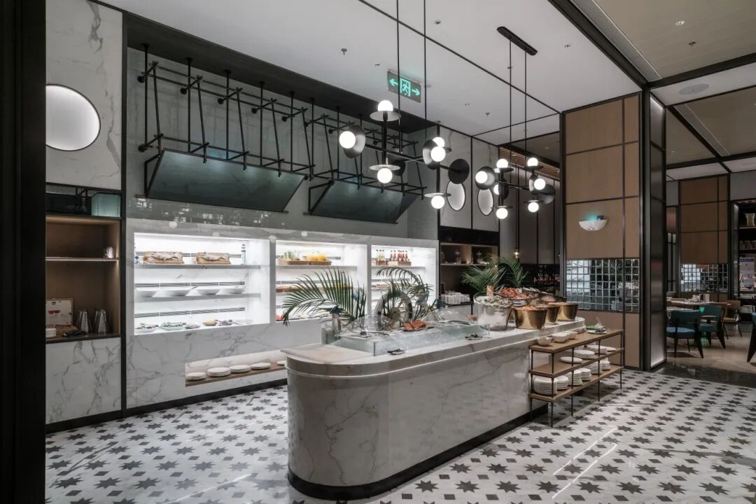 Шератон Тайюань, Вы можете увидеть столешницы, пол и стены цвета «калакатта», Бренд впервые появился в городе, используя материал Calacatta White для позиционирования своего бренда как премиального. Шелковистый блеск мрамора и чистая белая поверхность создают уютные, но в то же время формальные пространства в вестибюле и ключевых зонах, демонстрируя, как натуральный камень может подчеркнуть индивидуальность бренда, привнося в него непреходящую элегантность.