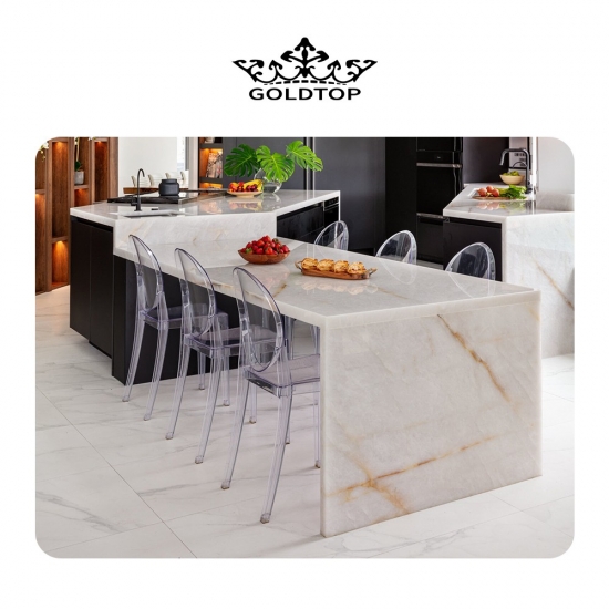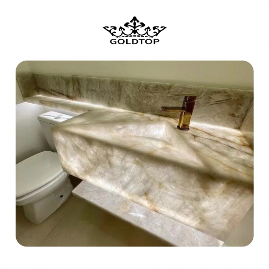 Информация о продукте · Название: Плиты белого оникса  · Цвет: Белый · Место происхождения: Китай · Толщина: 3/8 дюйма, 3/4 дюйма · Размер: 2800 x 1800 мм, 2800 x 1600 мм и т. д. · Доступные варианты отделки: Полированная, Хонингованная, Пламенная, Кожа  · Применение: Гостиница, Внутренняя отделка