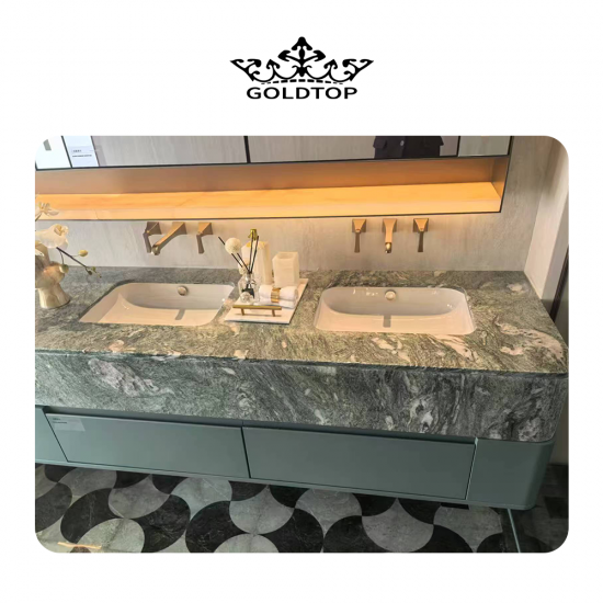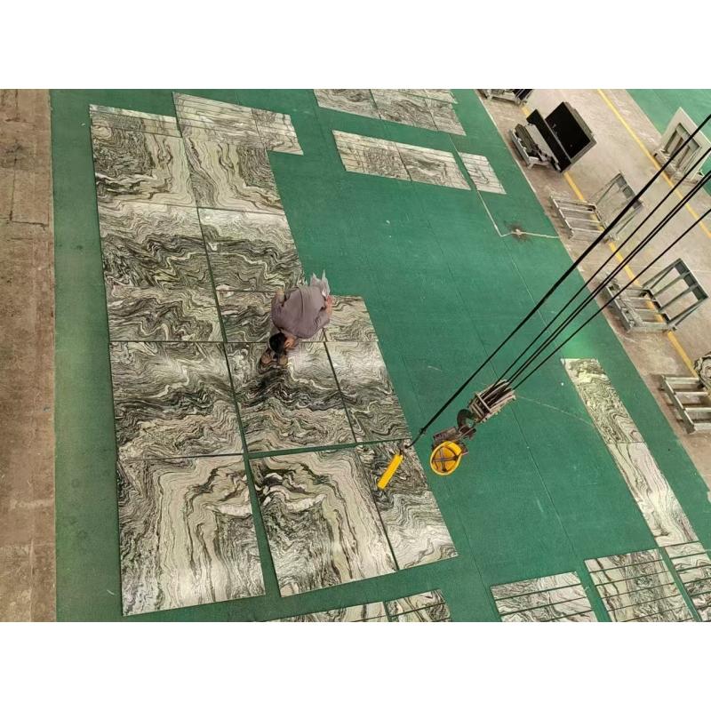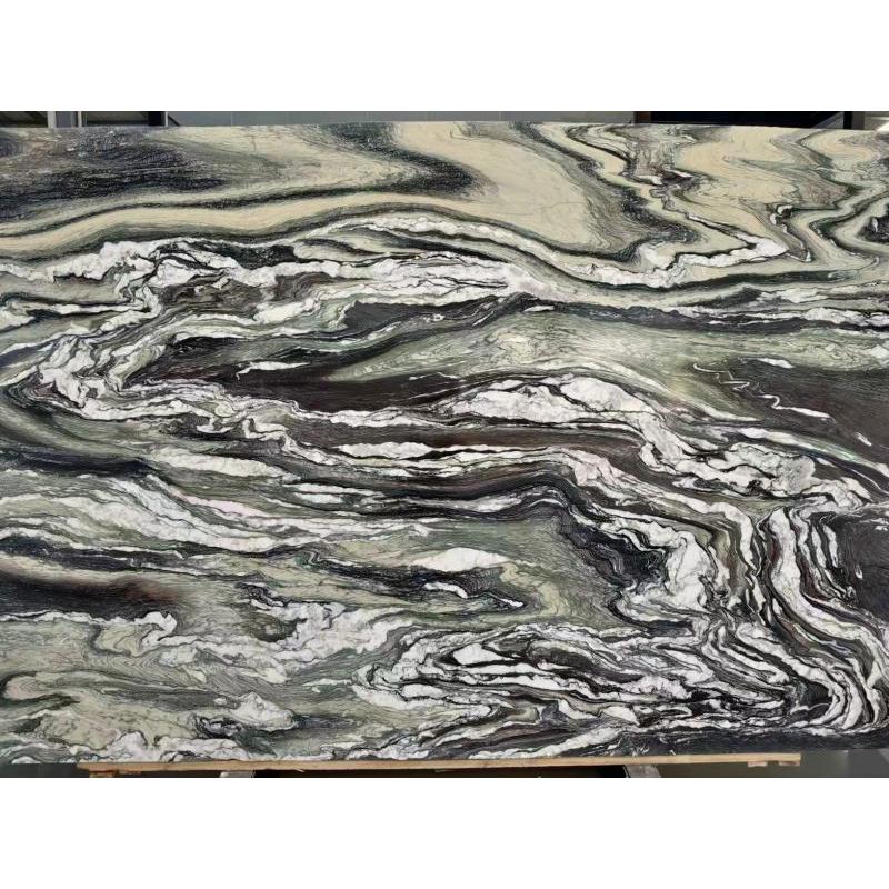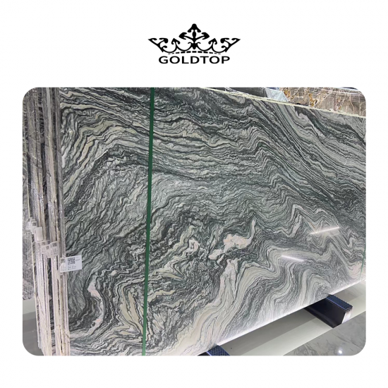 Ландшафтные зеленые мраморные плиты и плитка Насыщенная, насыщенная зеленая основа напоминает о красоте пышных лесов и горных ландшафтов. Тонкие оттенки тона, от оливкового до изумрудного, создают глубину и индивидуальность, а замысловатые прожилки более светлых оттенков белого, бежевого или серого формируют динамичные узоры, напоминающие текущую воду, туман или очертания гор. Каждая плита – уникальное произведение природного искусства, отполированное до глянцевого блеска, который усиливает блеск плитки и подчёркивает поразительный контраст между ярким зелёным фоном и тонкими прожилками.